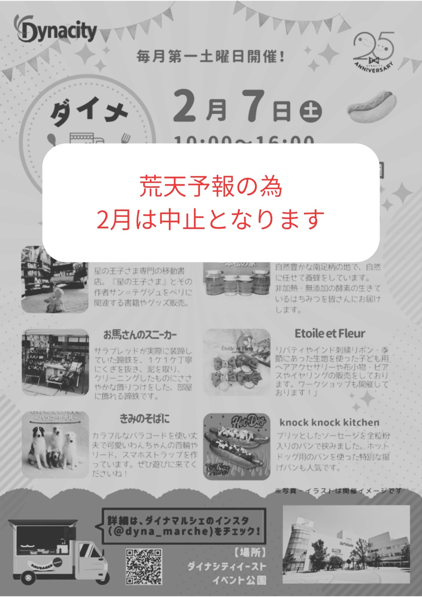 ■2月17日(火) ウエスト・ウエスト アネックス ※ダイナシティイースト・ウォークは営業いたします。 ■2月24日(火) イースト・ガーデンウォーク ※ダイナシティウエスト・ウエスト アネックス・シネウォーク及び一部専門店は営業いたします。