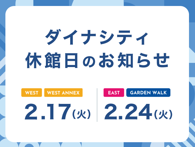 2026.1.24(土) - 2.3(火)、2026.2.11(水) - 2.16(月)、2026.2.25(水) - 3.3(火)