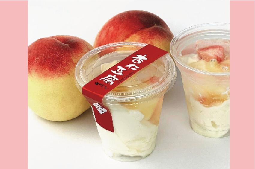 なめらかな杏仁豆腐に旬の桃を入れてゼリーを流しました。