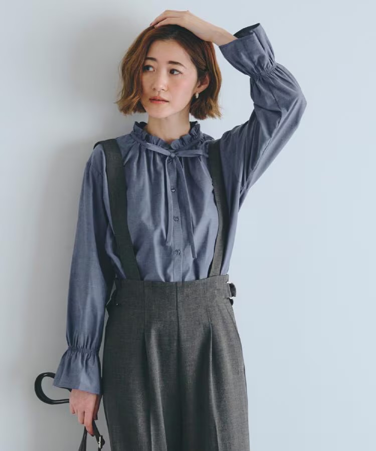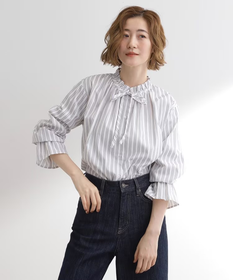 上品なフリルとリボンでシンプルに華やぐブラウス。