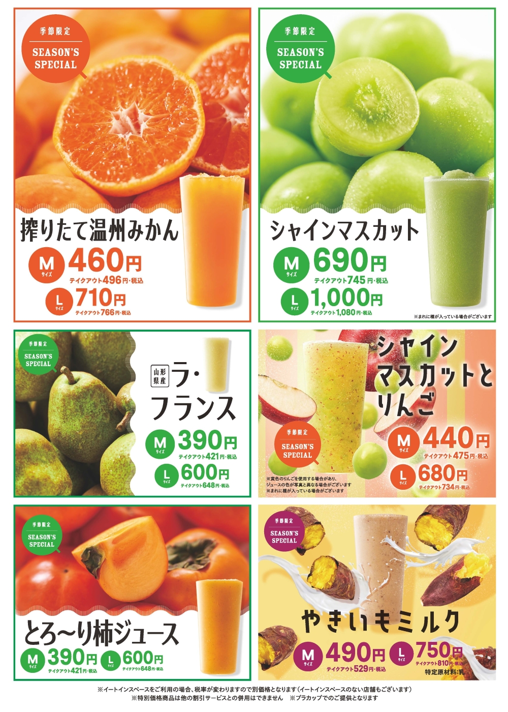 人気No.1バナナミルクなど通年メニューも店頭にご用意しております。