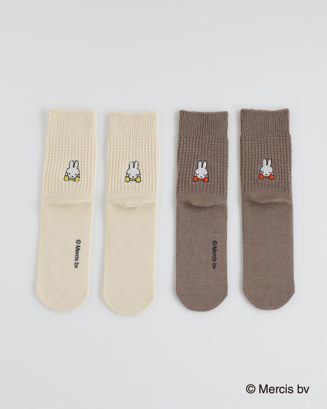 左右で異なる表情のミッフィーをモチーフにした靴下1種類、