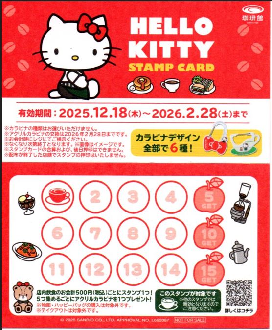 売店での、販売商品、福袋、ハローキティのハッピーバッグはスタンプ押印の対象外です。