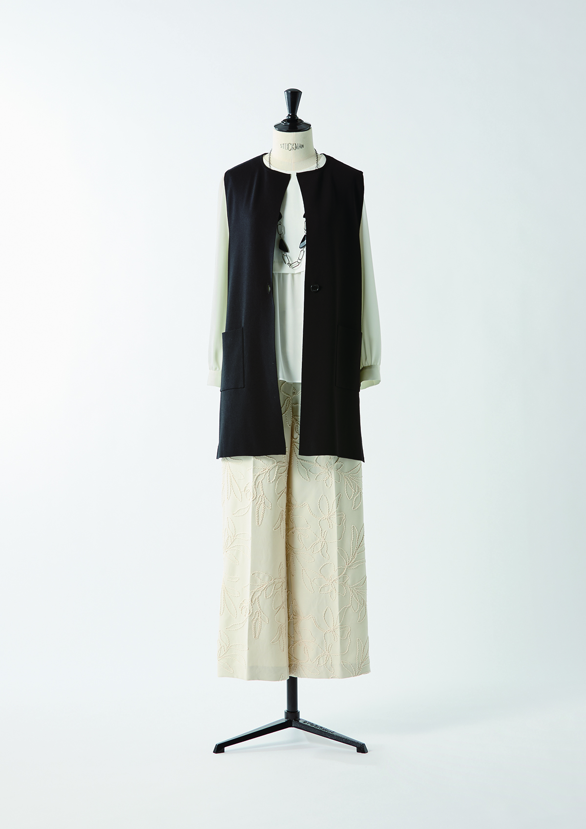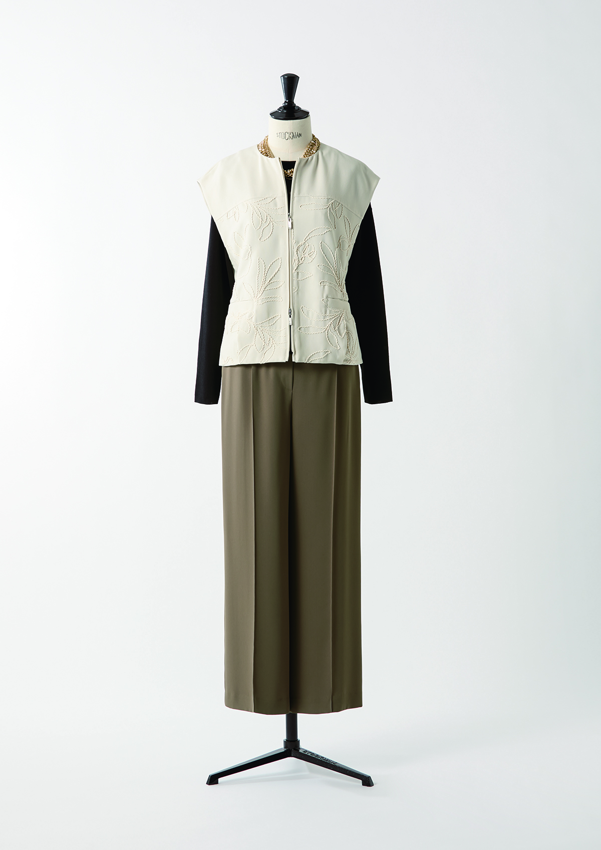 着回し力のあるモノトーン、オフホワイト、カーキなどベーシックカラーを中心とした「きちんとコーデ」を提案します。