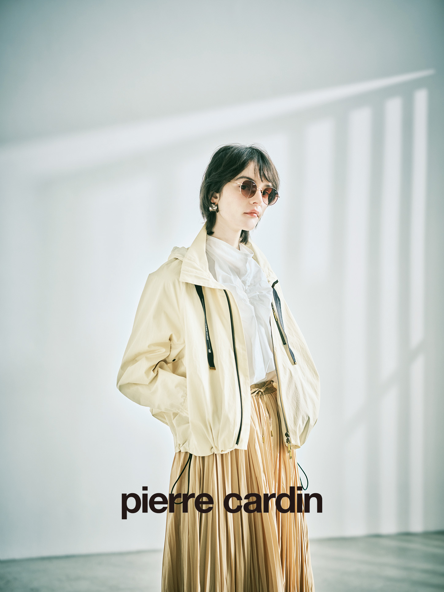 カルダンらしいフォルム感あるライトアウターをメインとした、着回し力のある春スタイル。