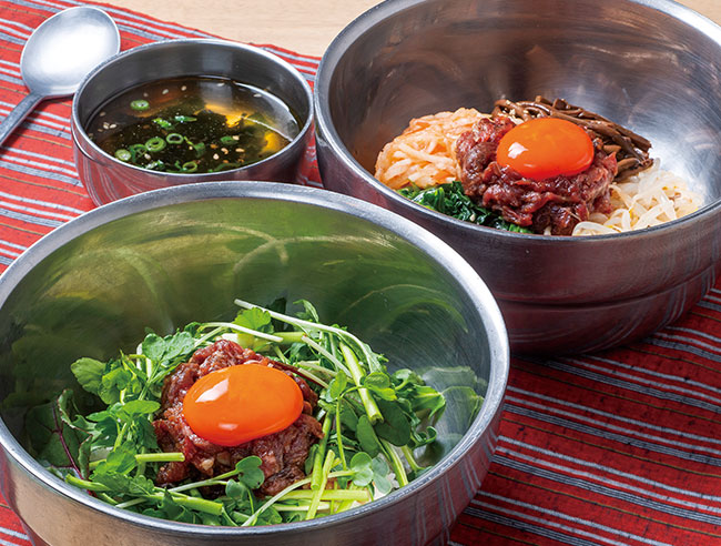 ●手前:ユッケビビンバ(セリ)スープ付き