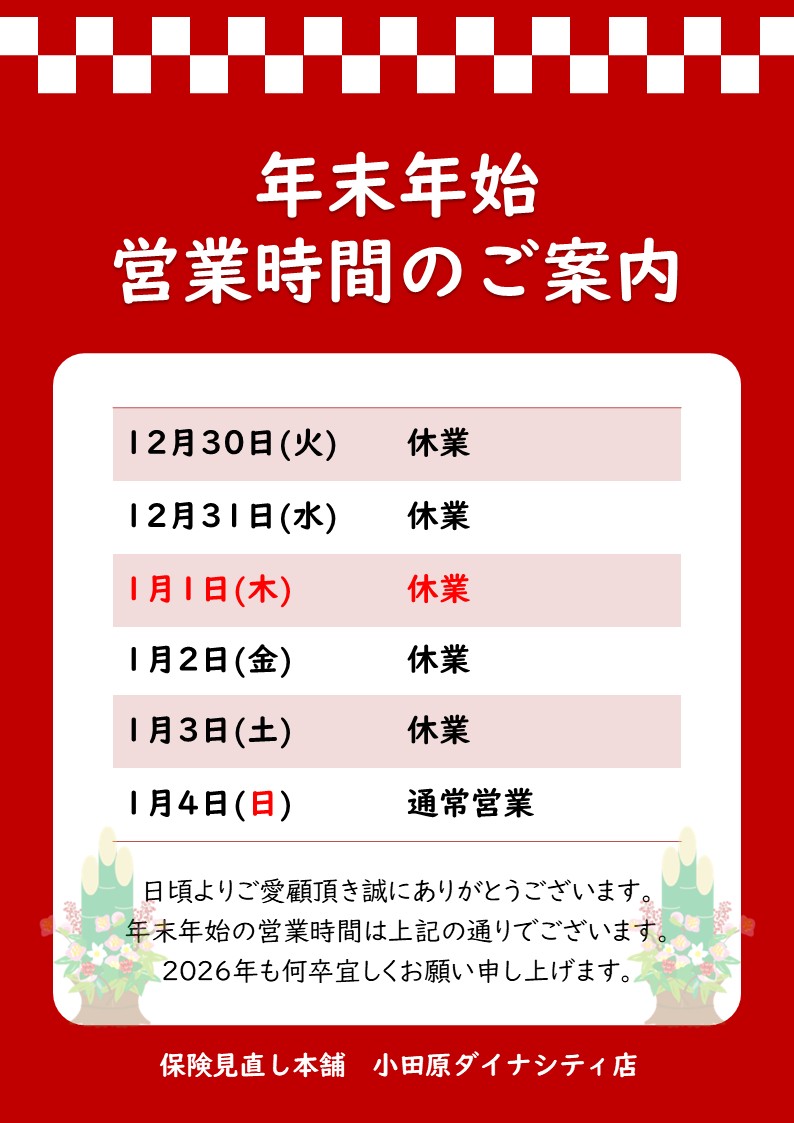 【保険見直し本舗】年末年始営業時間のお知らせ