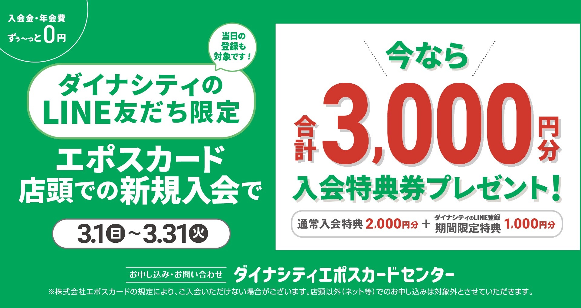 ダイナシティLINE友達限定エポスカード新規入会キャンペーン