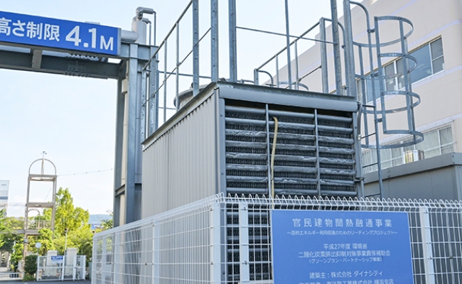 ダイナシティイーストと隣接する川東タウンセンターマロニエの空調熱源設備を連携して運営(熱供給)。単独で設備更新する場合に比べ、CO2排出量を大幅に低減できます。