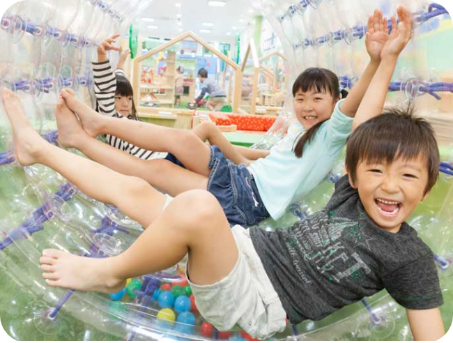 あそびパークPLUSは、夢中になれるあそびがつまったキッズプレイグラウンドです。身体を動かし、頭を使い、子どもたちの自由な発想であそびは無限に広がります。