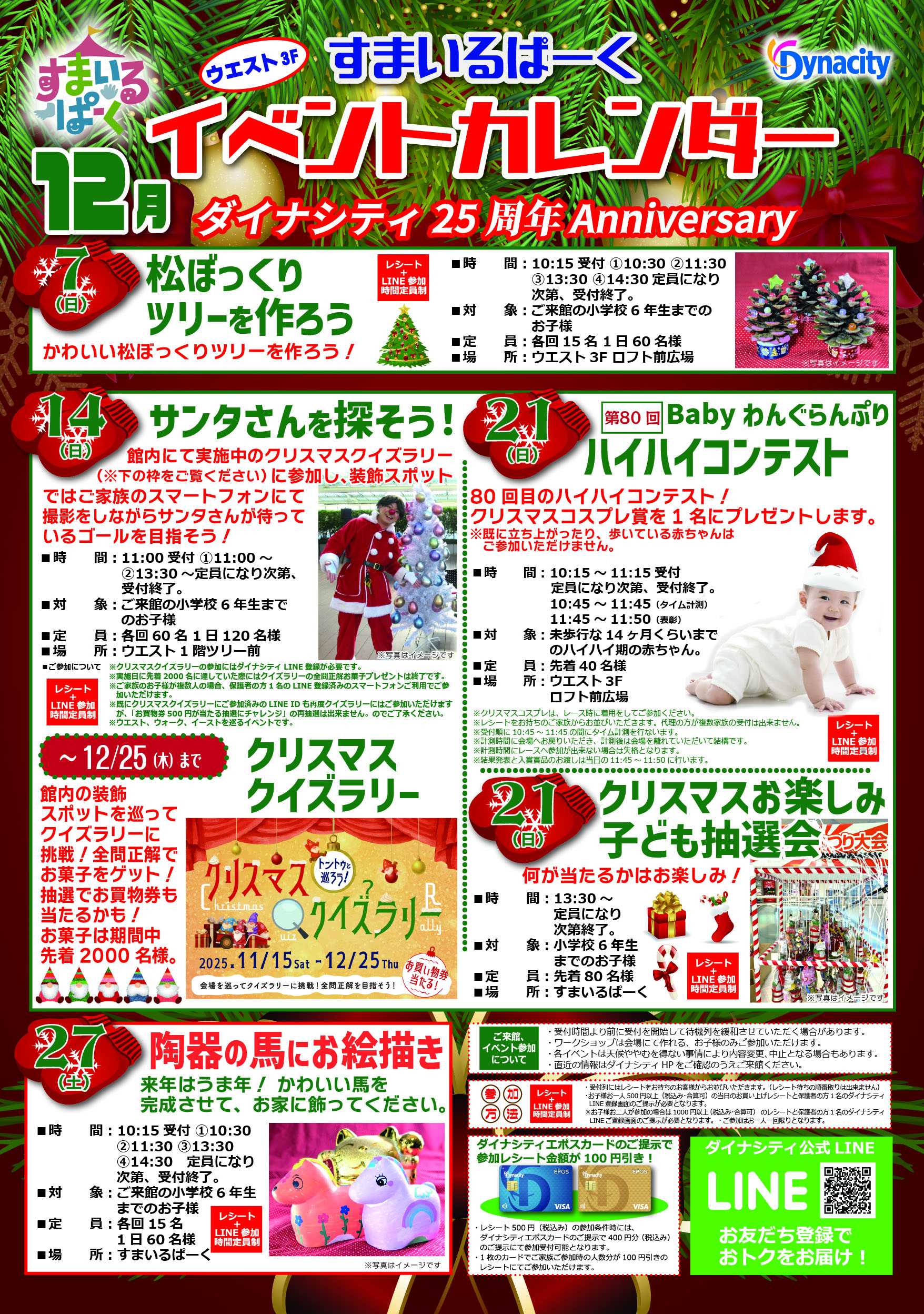 ※お子様お二人が参加の場合、1枚1000円以上(税込み・合算可)のレシートと保護者の方1名のダイナシティLINEご登録画面のご提示が必要となります。