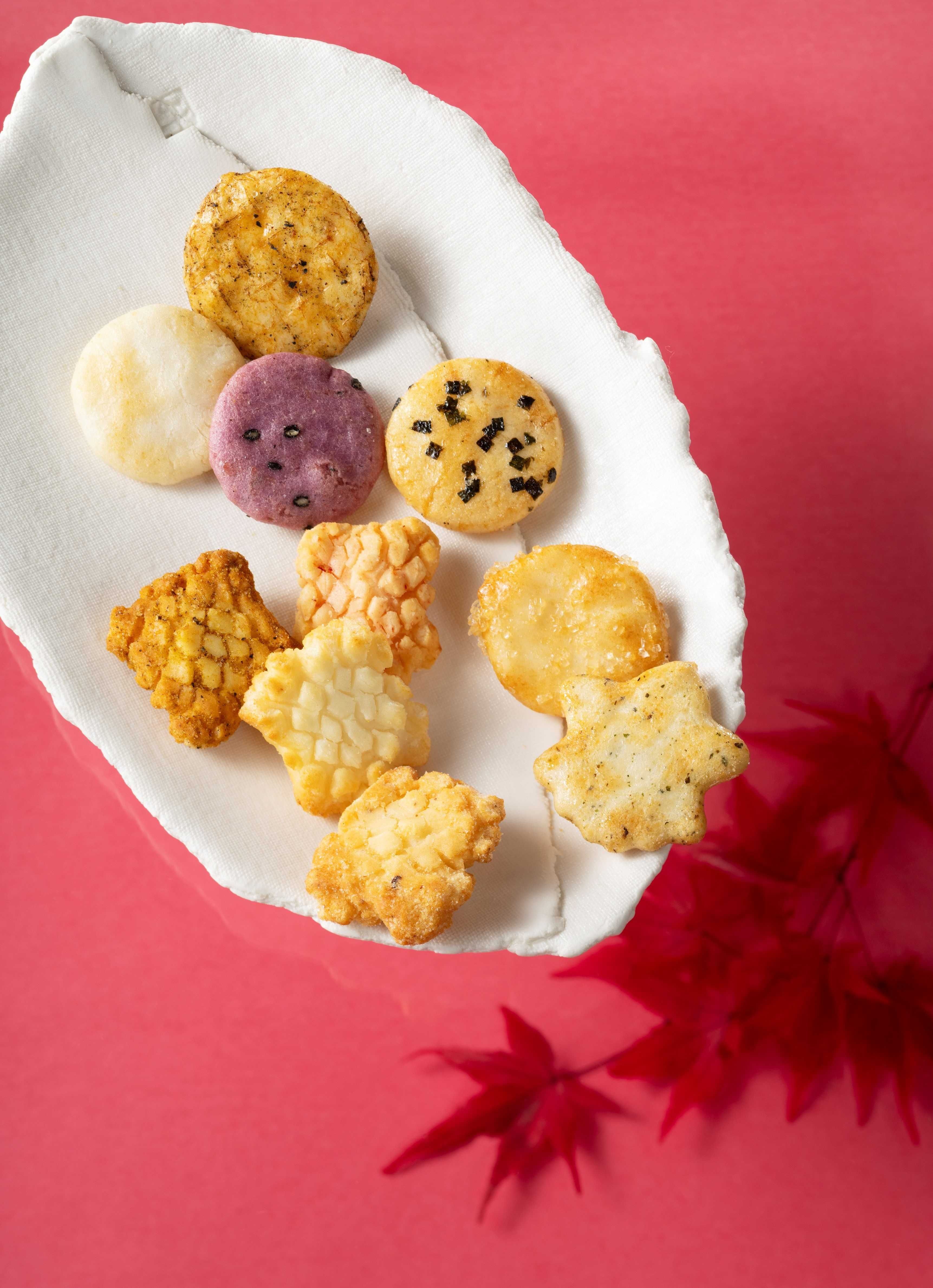 小粒系のおせんべいといろちどりをミックスした合計10種のあられとおかきの詰め合わせ