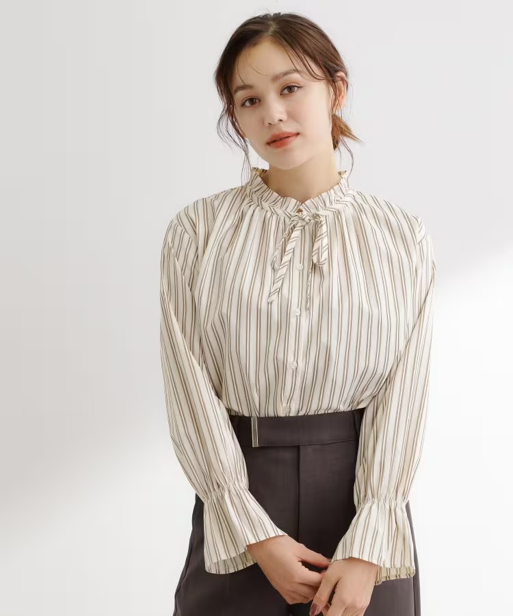 上品なフリルとリボンでシンプルに華やぐブラウス。