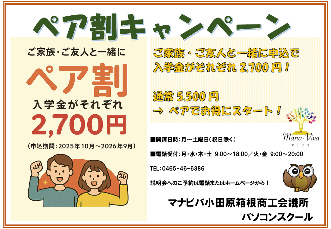 【ペアでお得に!パソコンスキルを一緒に磨こう】
