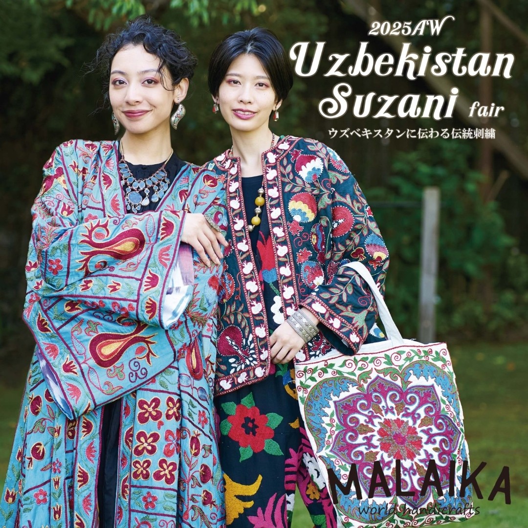 今回の期間限定巡回フェアでは、貴重なスザニ布を使った現地買い付けの伝統衣装とマライカオリジナルデザインの新作衣料などを多数取り揃えています!
