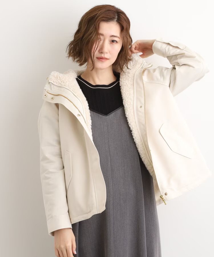 ライナー単独でも着用でき、セットで重ねればフードからのぞくボアが華やかなアクセントに。