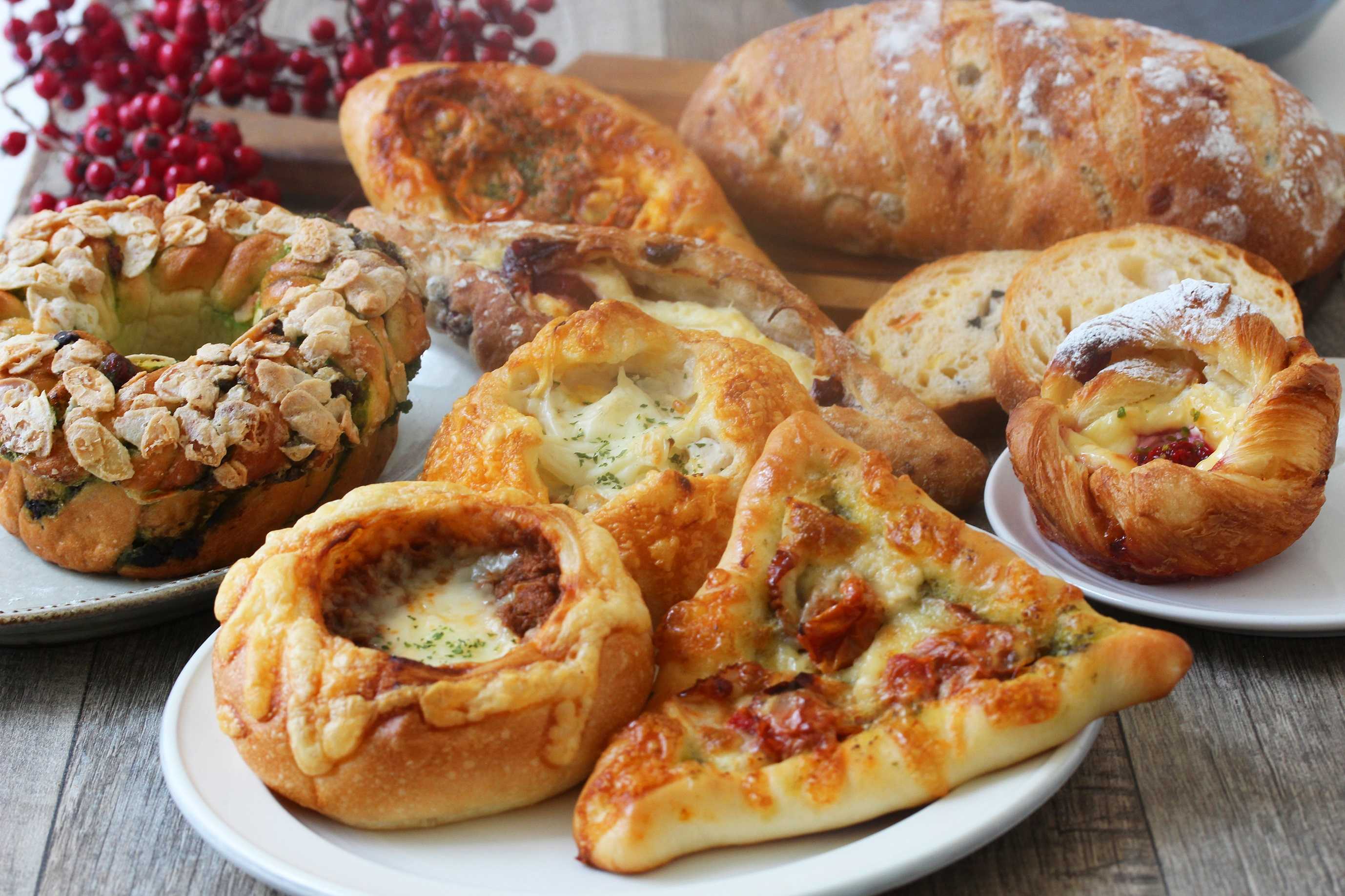 イタリアの発酵菓子「パネトーネ」や「パンドーロ」、ドイツの伝統菓子「シュトーレン」など、クリスマスに欠かせない商品に加え、フランスパンはもちろんクリスマスの食卓に彩りを添える商品を多数取り揃えております。