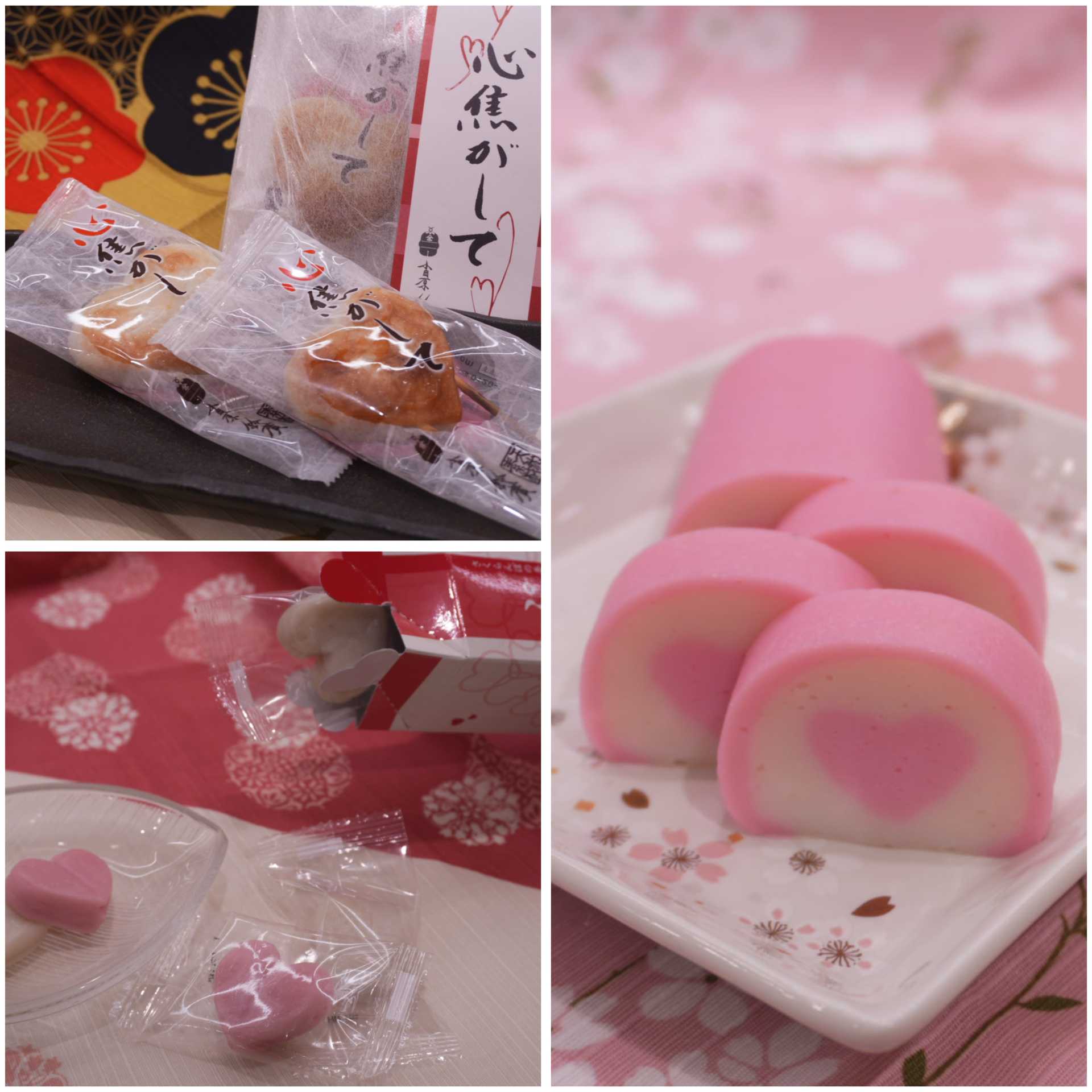 香ばしいハート型の焼き蒲鉾「心焦がして」や、切り口にハートが現れる「はぁとかまぼこ」を詰め合わせた、