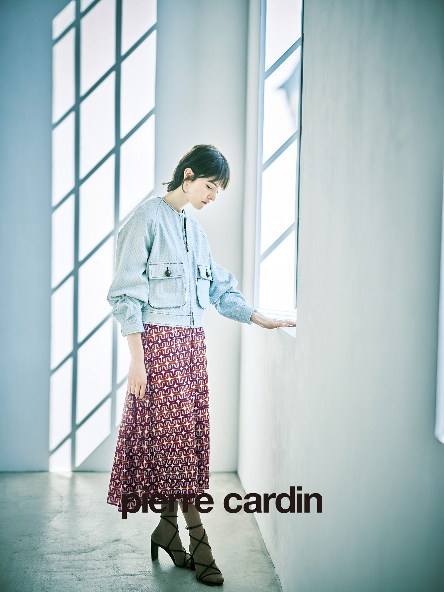 カルダンらしいフォルム感あるライトアウターをメインとした、着回し力のある春スタイル。