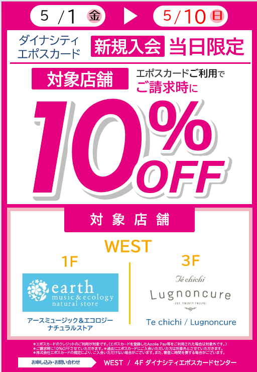 期間中、ダイナシティエポスカードに新規ご入会いただいた当日限定で、